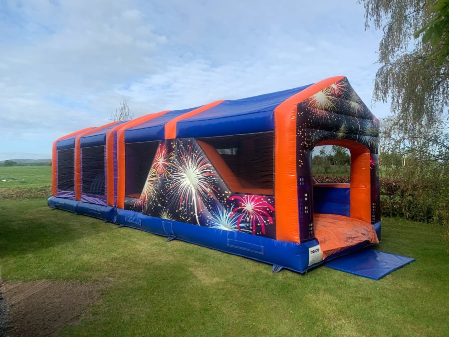 Looking for the ultimate way to energize your next party or gathering? The Fireworks is an impressive 45ft long inflatable adventure, designed to add excitement and colour to any celebration. Perfect for birthdays, celebrations, corporate events, and more, this vibrant attraction is suitable for all ages. It features a thrilling slide, a challenging climbing wall, and engaging obstacles that ensure hours of active fun for everyone!